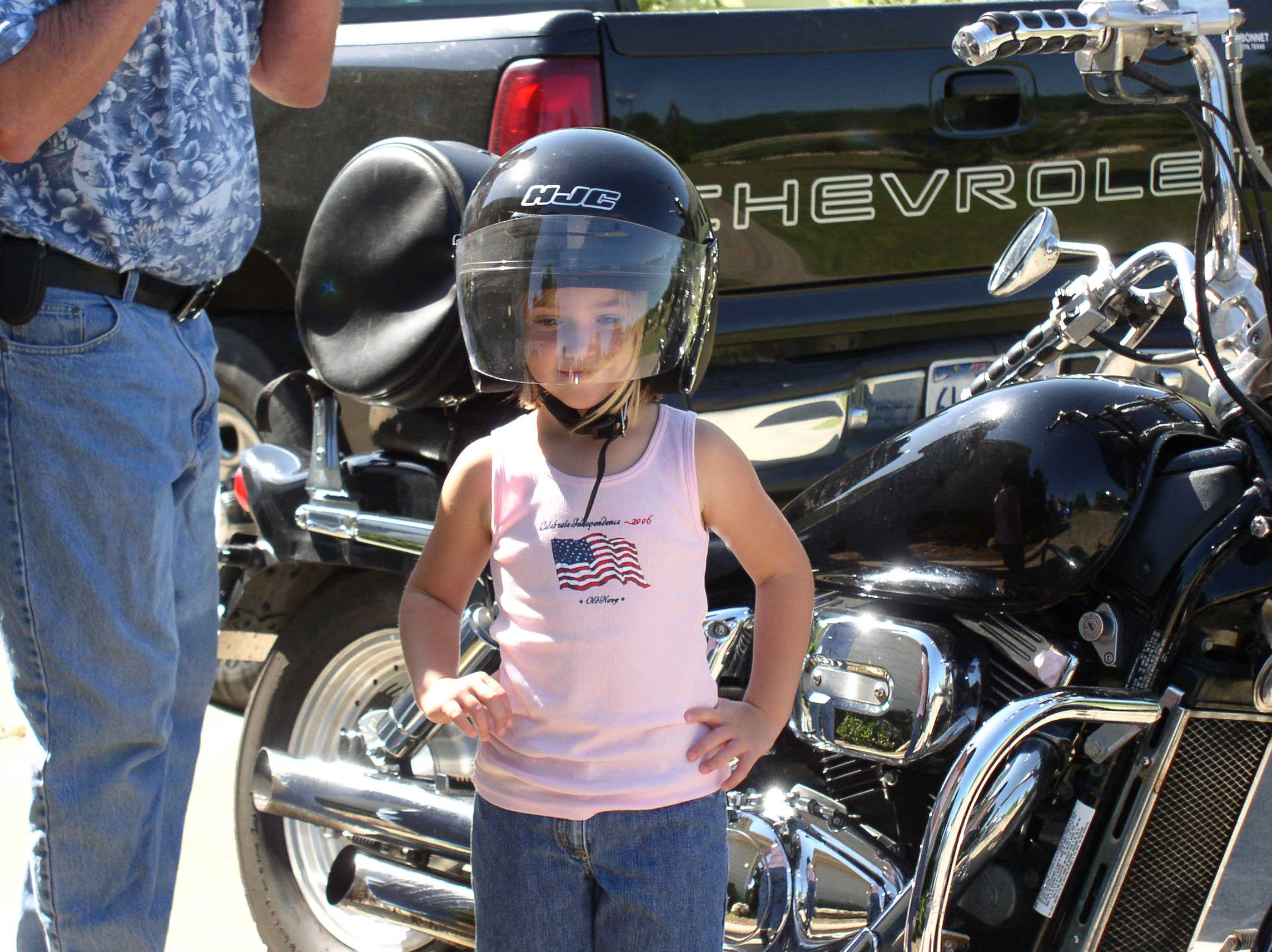 Darby gets her first taste of a motorcycle with Charlie! Wheeeeee! |