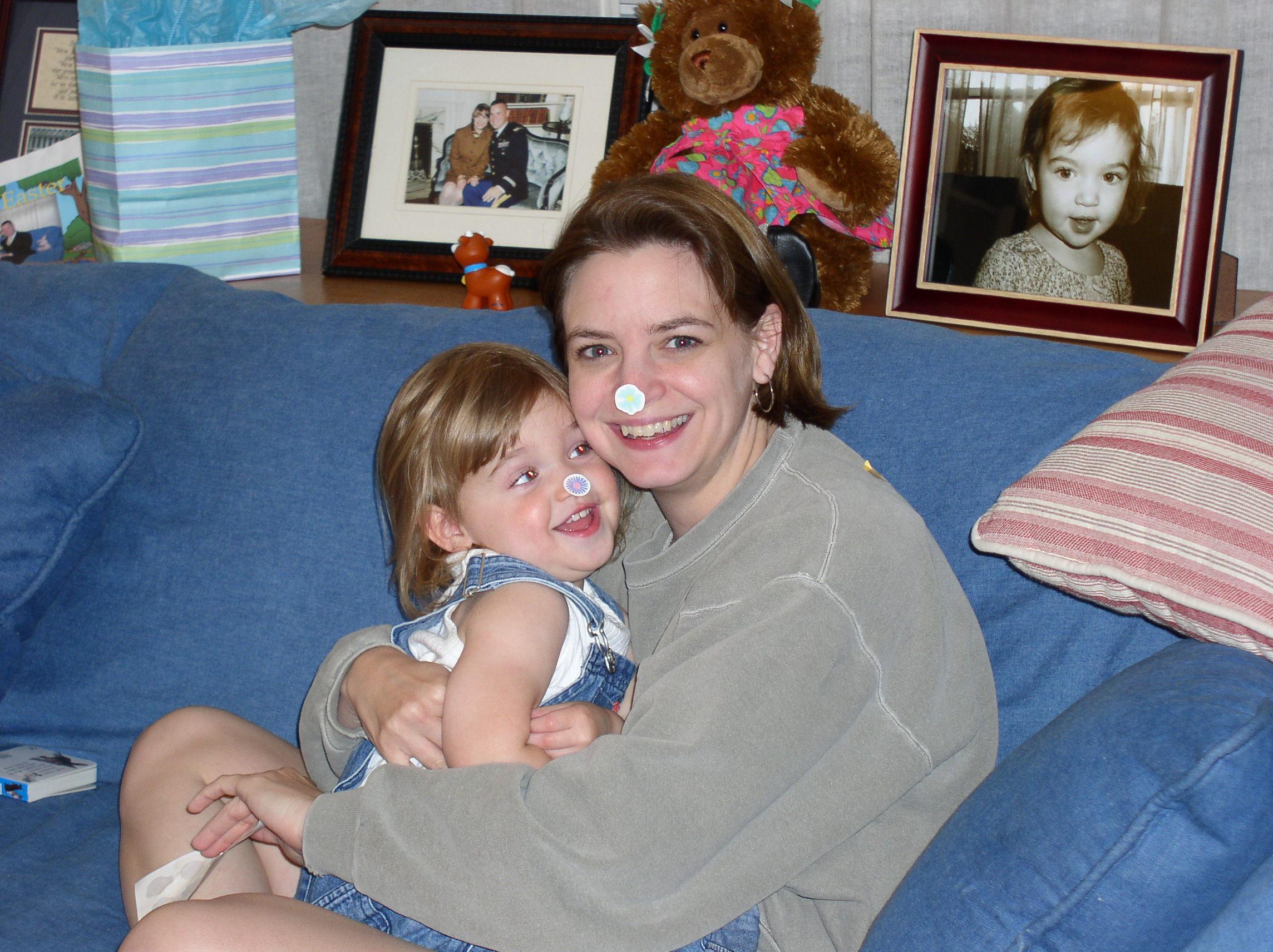 Darby and Kim playing with stickers on a rainy afternoon in May '03. |
